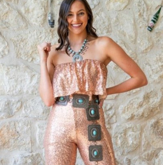 ROSE GOLD SEQUIN STRAPLESS JUMPSUIT