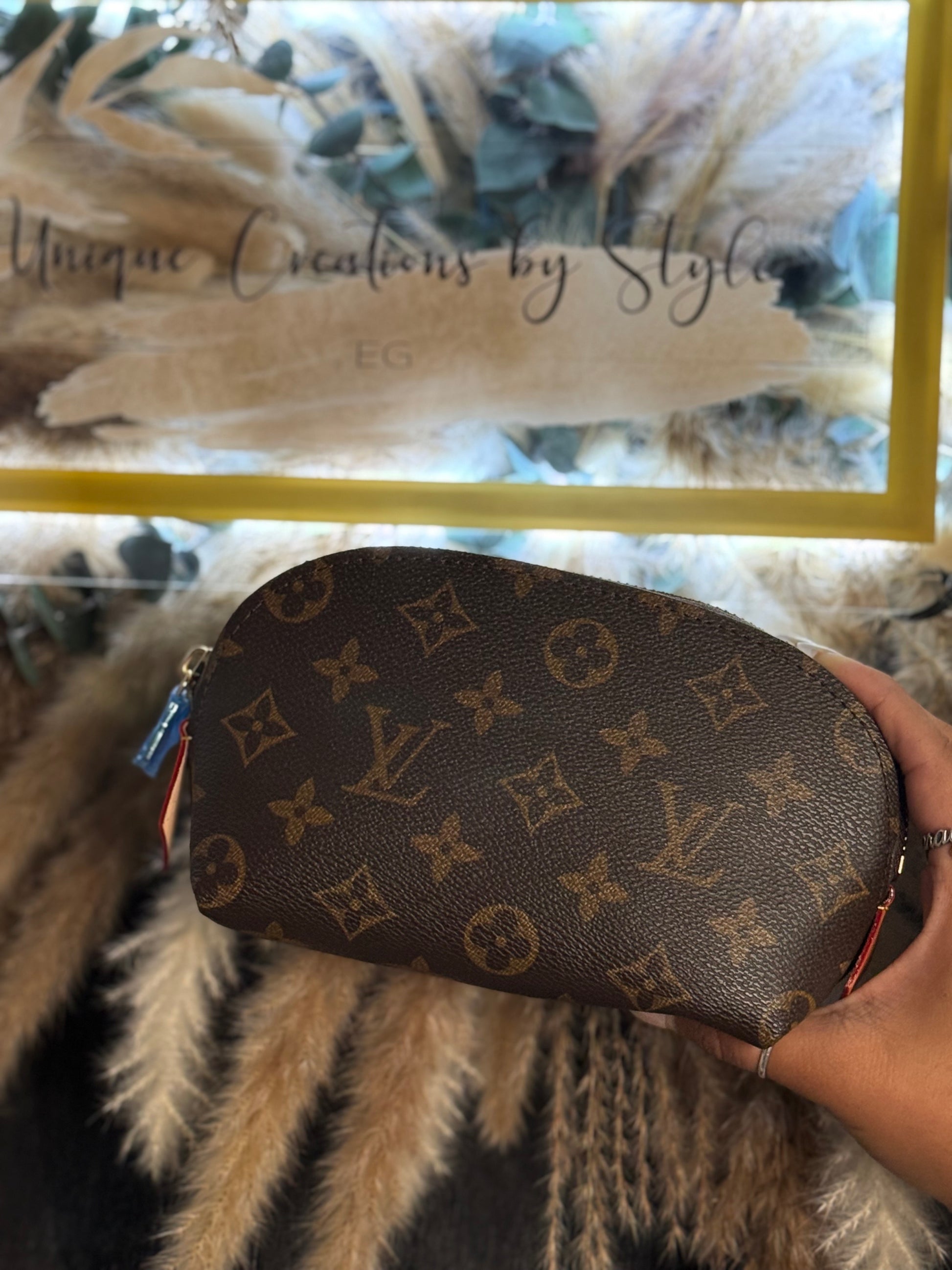 MAKEUP BAG WITH CREAM LEATHER INSIDE